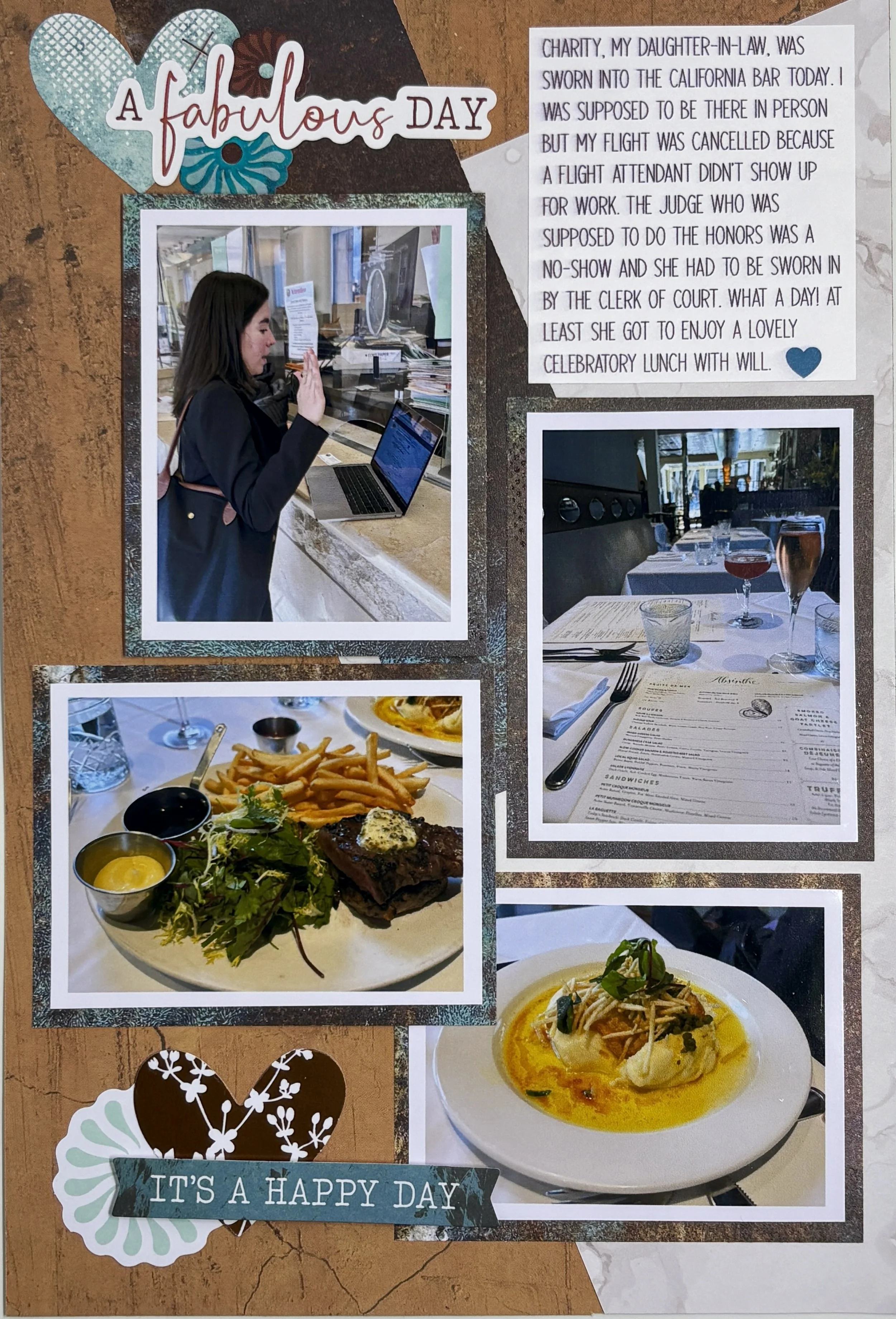 My daughter-in-law made us proud by getting sworn in as a member of the California Bar! She officially a practicing attorney in the state of California. I was able to get photos from our son, her husband (Will). I have added her to my 2026 Scrap Journal in January. I used the beautiful Copper Canyon 2 paper pack and embellishments. I love being able to use my Scrap Journal to capture the everyday moments and not just the holidays and vacations.