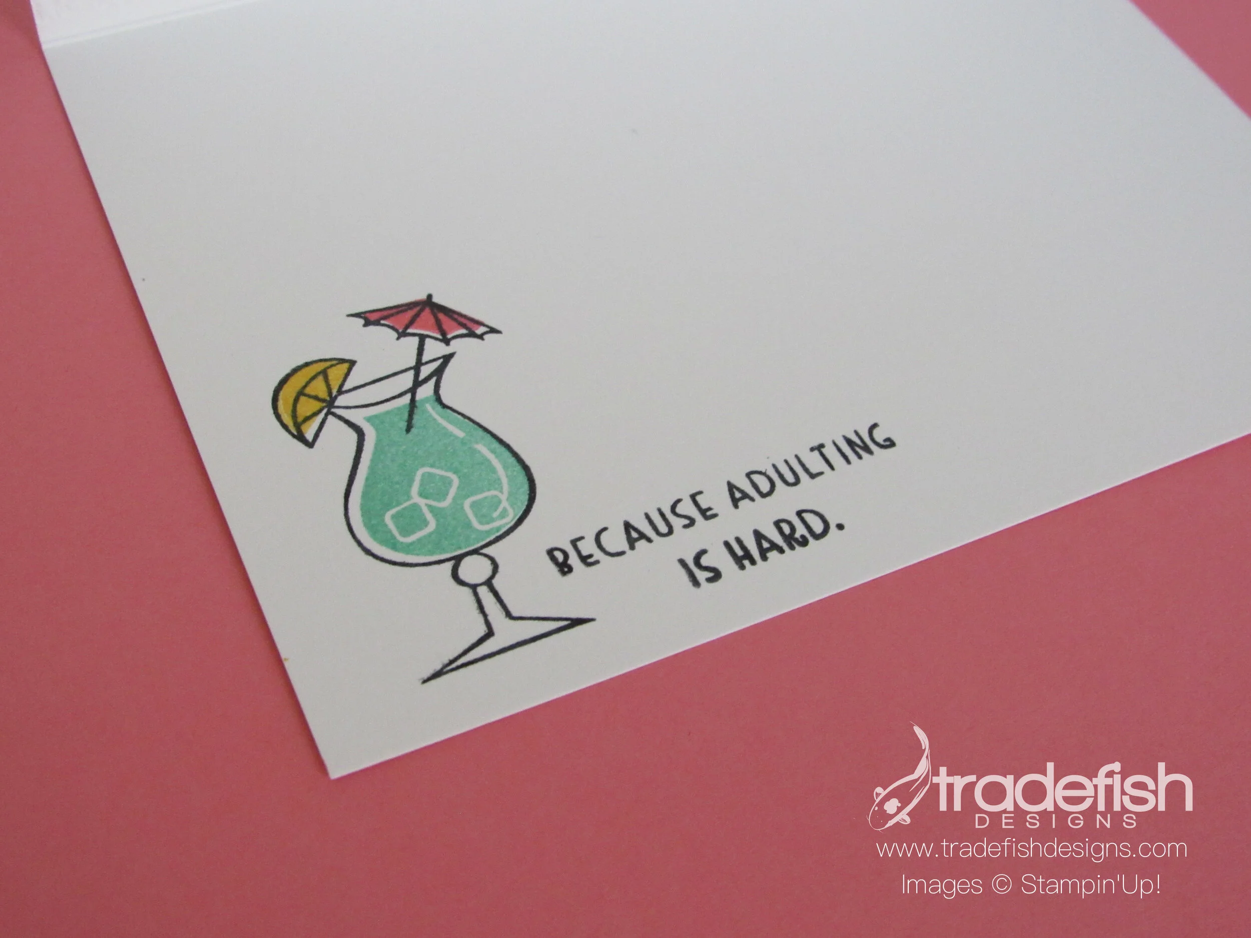 Today’s card is for all of those who like to enjoy the occasional cocktail at the end of the day… This is a simple but fun card. I embossed the front of the card and used the Nothings Better Than stamp set and dies to create this cute little card front.